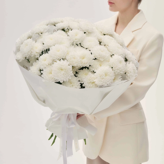 -Монобукет из белой кустовой хризантемы