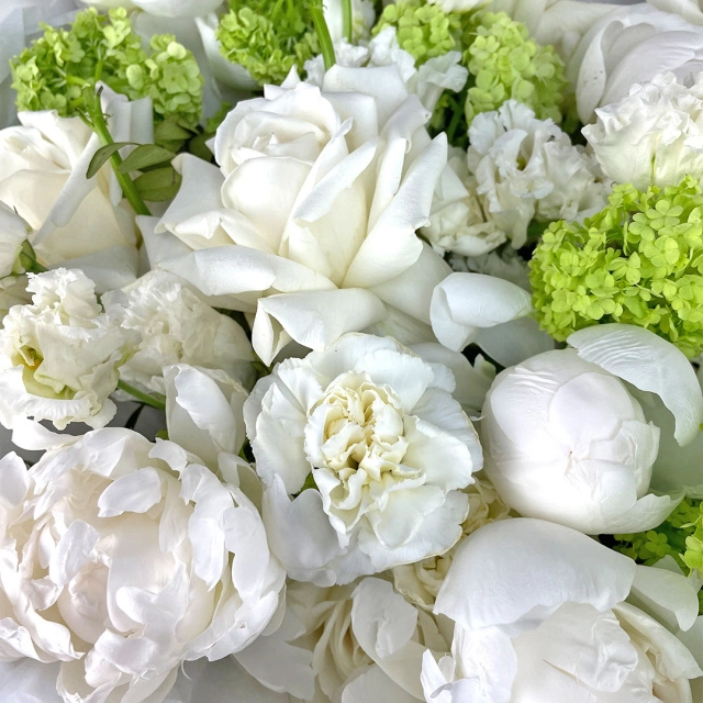 пион, эустома, вибурнум, роза пионовидная, гвоздика