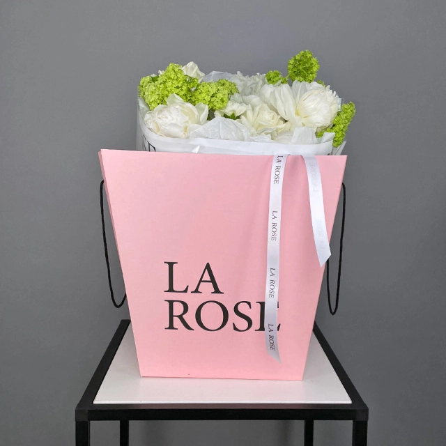Свежие цветы от La Rose доставляются в фирменной коробке и вазе. Переставьте букет из аквабокса в вазу с водой, предварительно подрезав стебли под углом. Меняйте воду ежедневно, обновляя срез. На 2-3-й день можете добавить наш порошок. Используйте холодную воду и добавляйте лёд для лучшего эффекта. Держите цветы вдали от отопителей, солнца и фруктов — они вредят растениям.