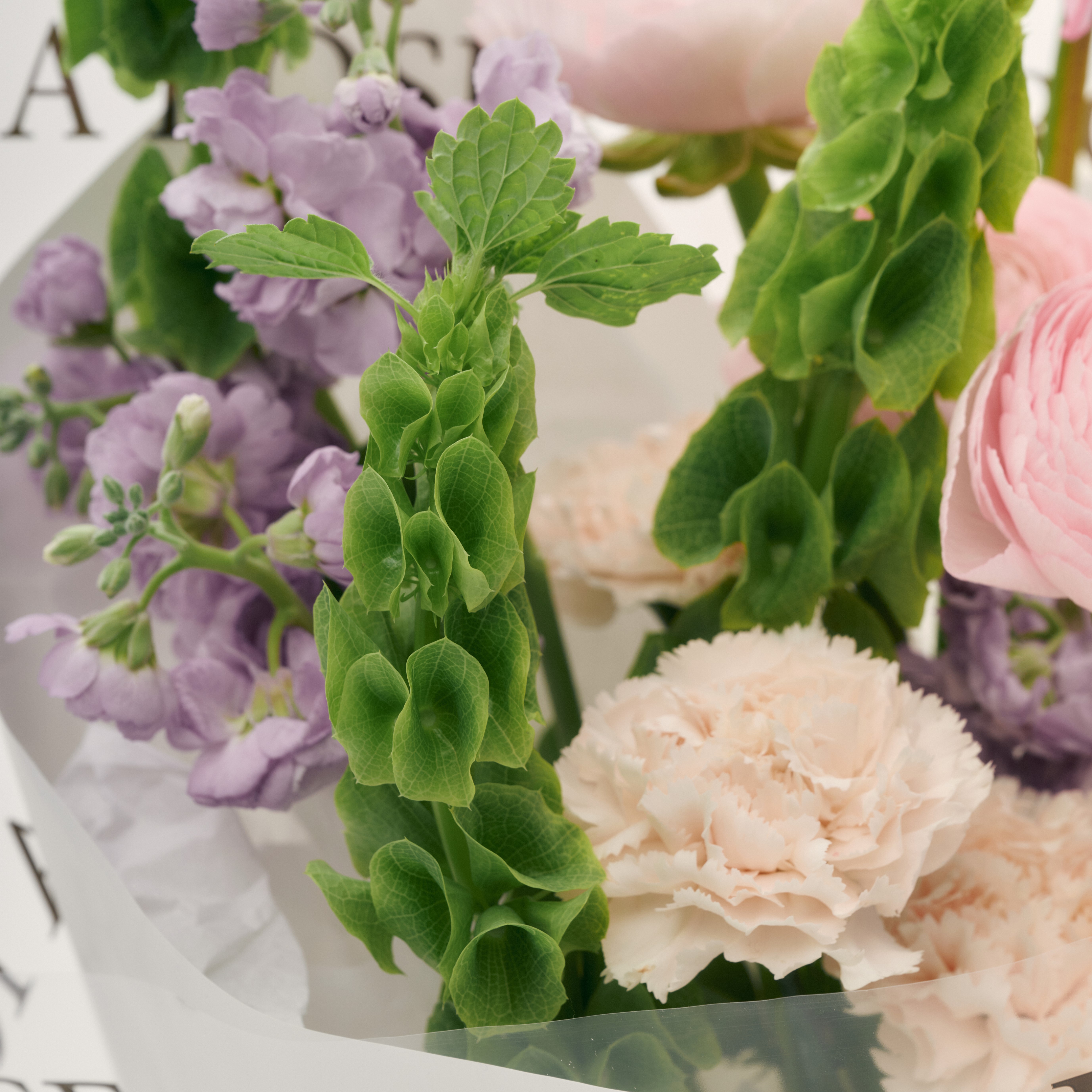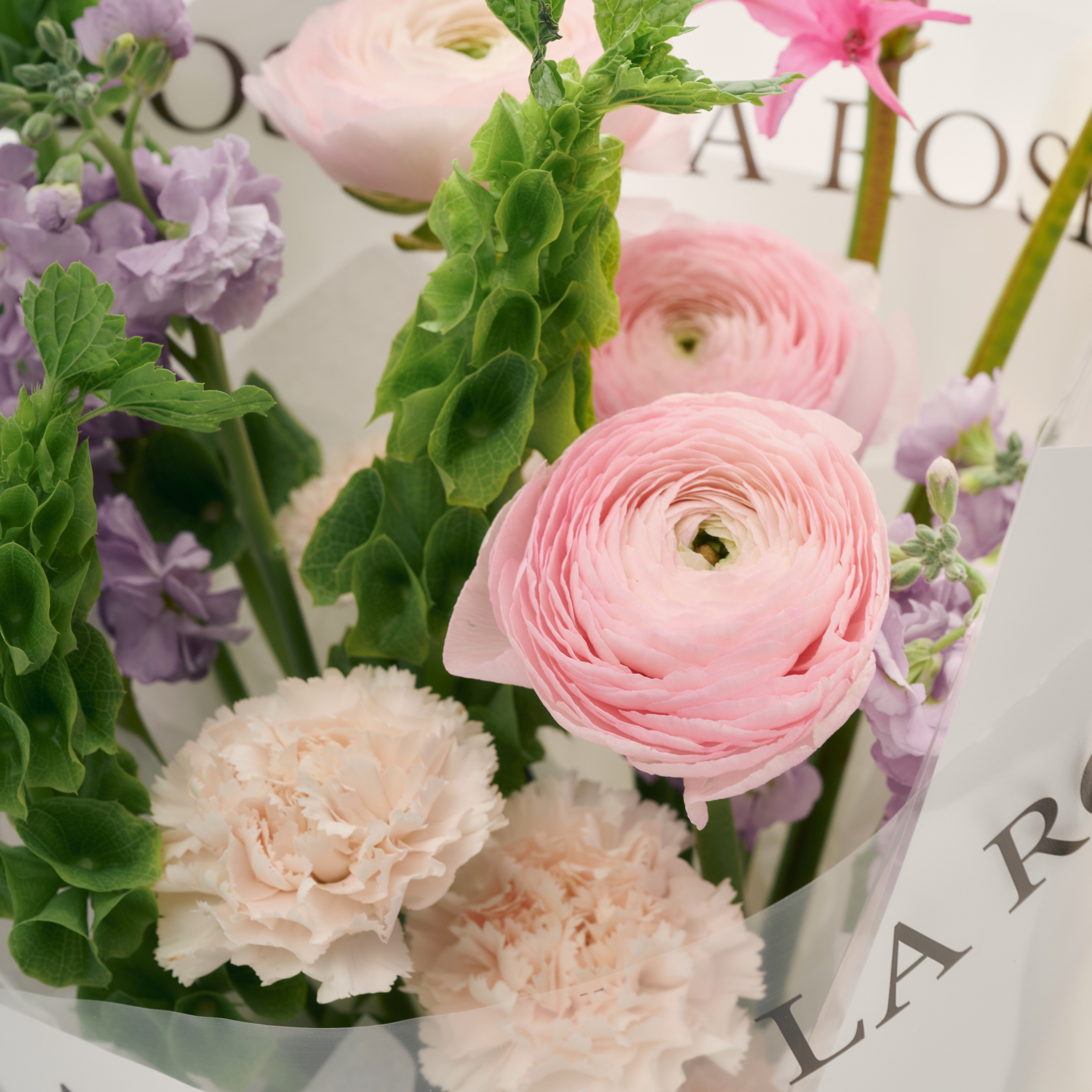 Ранункулюс Эквадор Cloni Success Favola Reserved, Нарине Aphrodite, Левкой срезка Эквадор Lavander, Молюцелла Эквадор, Гвоздика одиночная Эквадор Cream, Фисташка срезка Китай