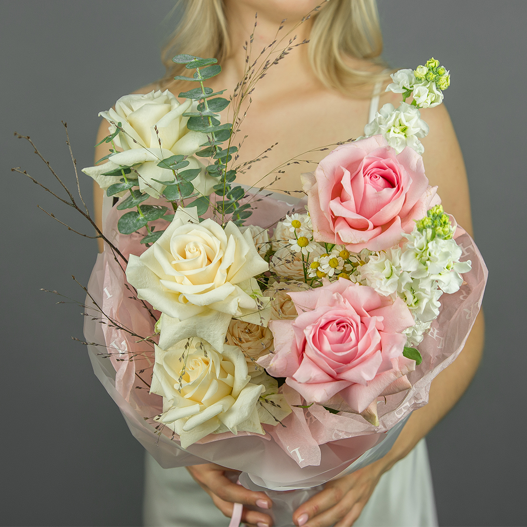 Некоторые цветы и материалы являются сезонными и могут быть недоступны в данный момент, поэтому мы оставляем за собой авторское право определять конечный состав букета.