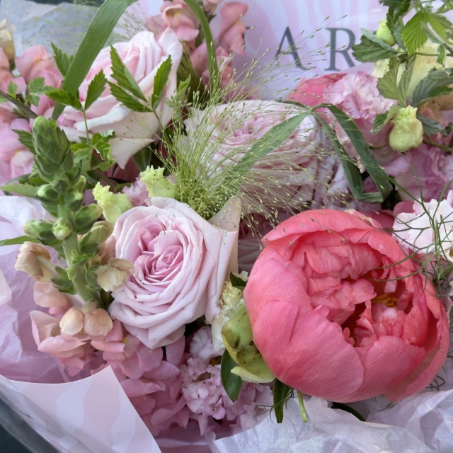Доставим букет в стильной транспортировочной коробке и вазе