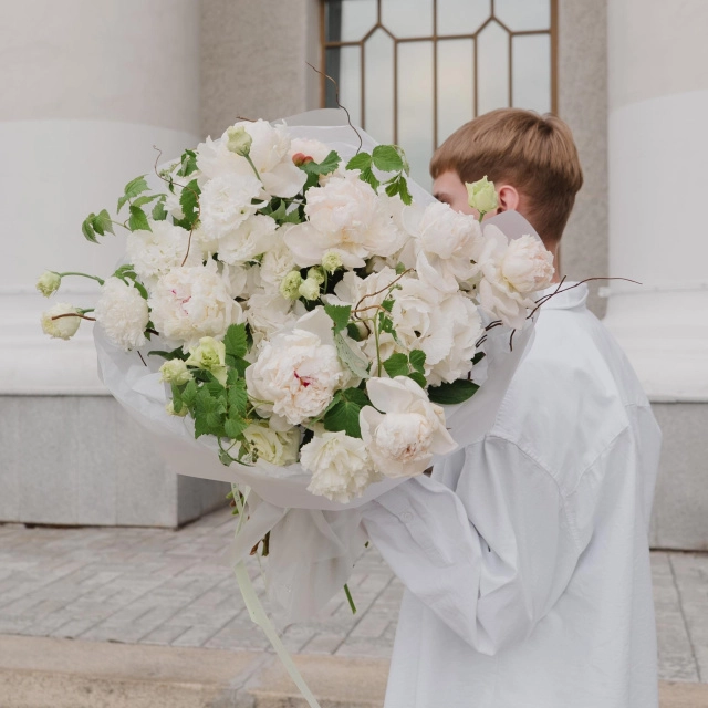 Букет с белыми пионами