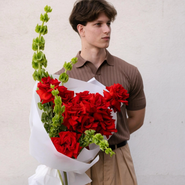 Букет с французской розой и молюцеллой