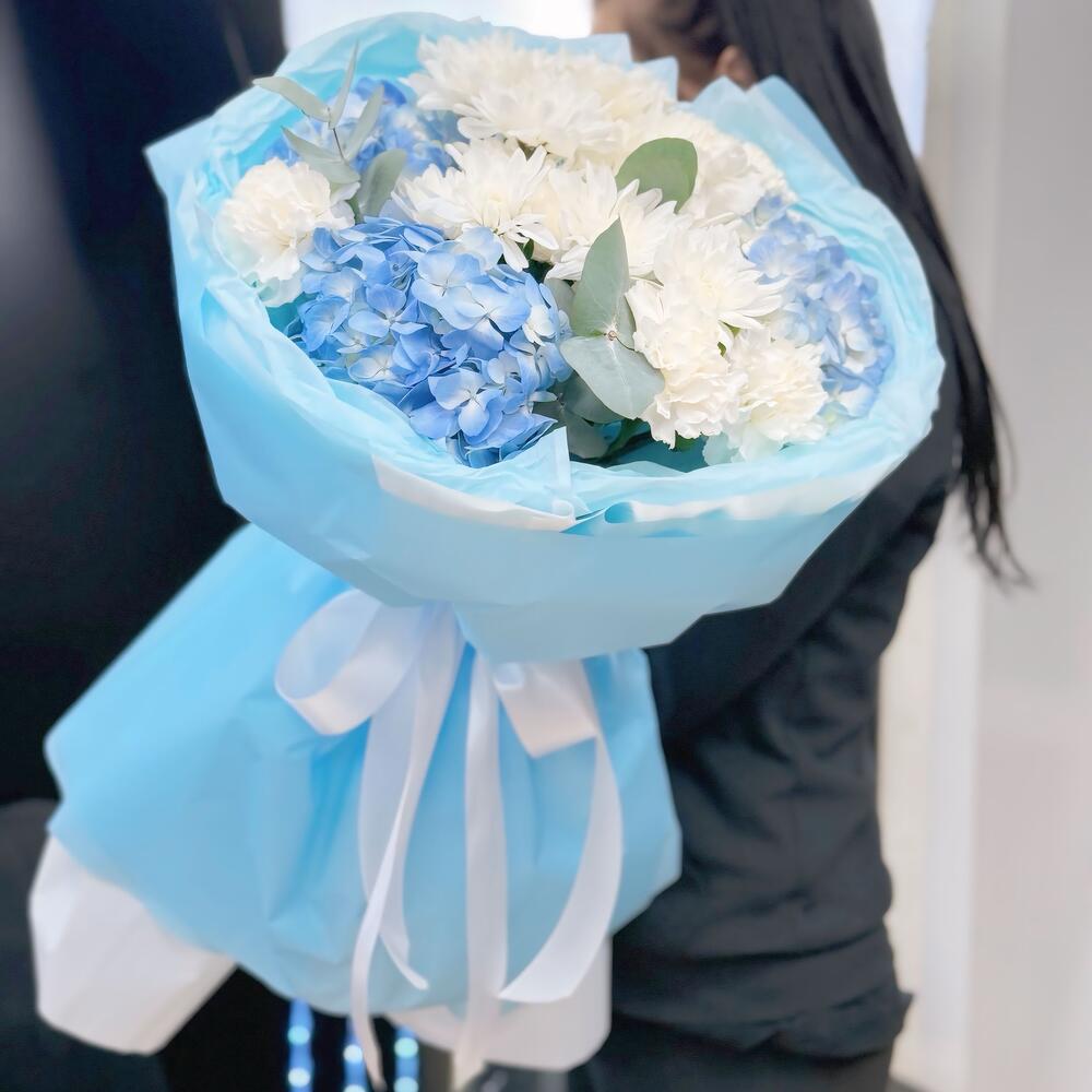 Букет с гортензией и диантусами