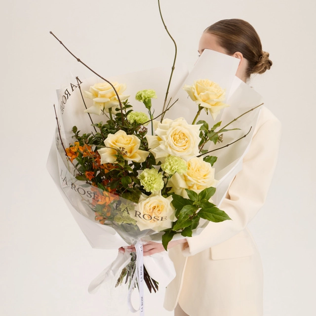Некоторые цветы и материалы являются сезонными и могут быть недоступны в данный момент, поэтому мы оставляем за собой авторское право определять конечный состав букета.