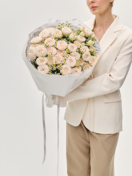 Дуобукет из кустовой розы иSophie с ромашками