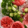 Сборный букет с розовыми розами и молюцеллой