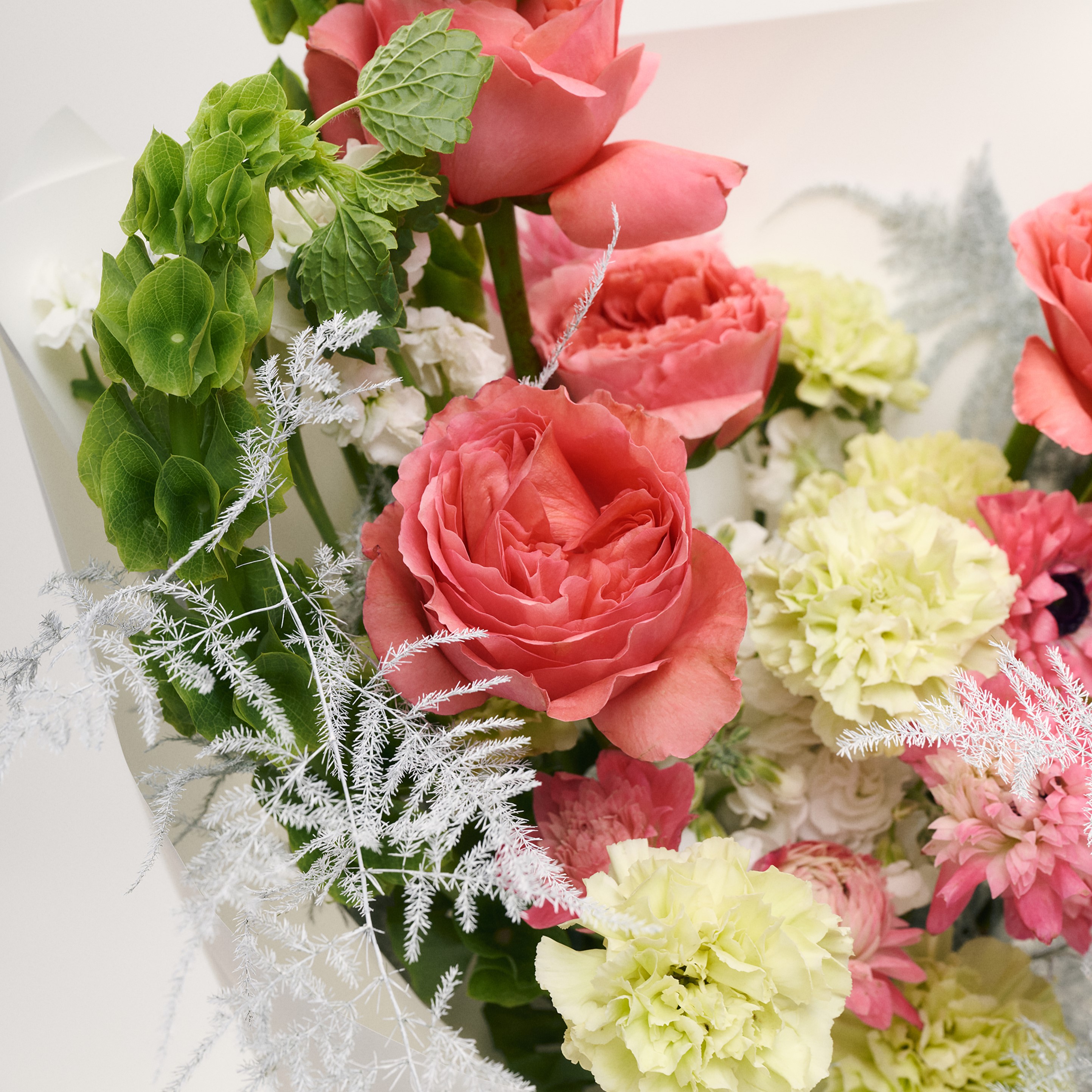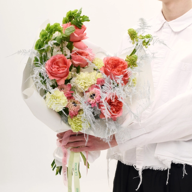 Свежие цветы от La Rose доставляются в фирменной коробке и вазе. Переставьте букет из аквабокса в вазу с водой, предварительно подрезав стебли под углом. Меняйте воду ежедневно, обновляя срез. На 2-3-й день можете добавить наш порошок. Используйте холодную воду и добавляйте лёд для лучшего эффекта. Держите цветы вдали от отопителей, солнца и фруктов — они вредят растениям.