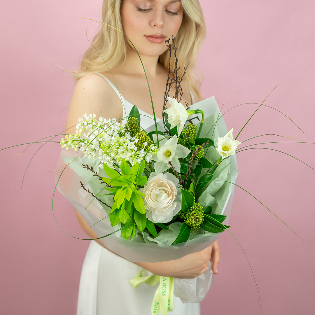 Доставим букет в стильной транспортировочной коробке и вазе