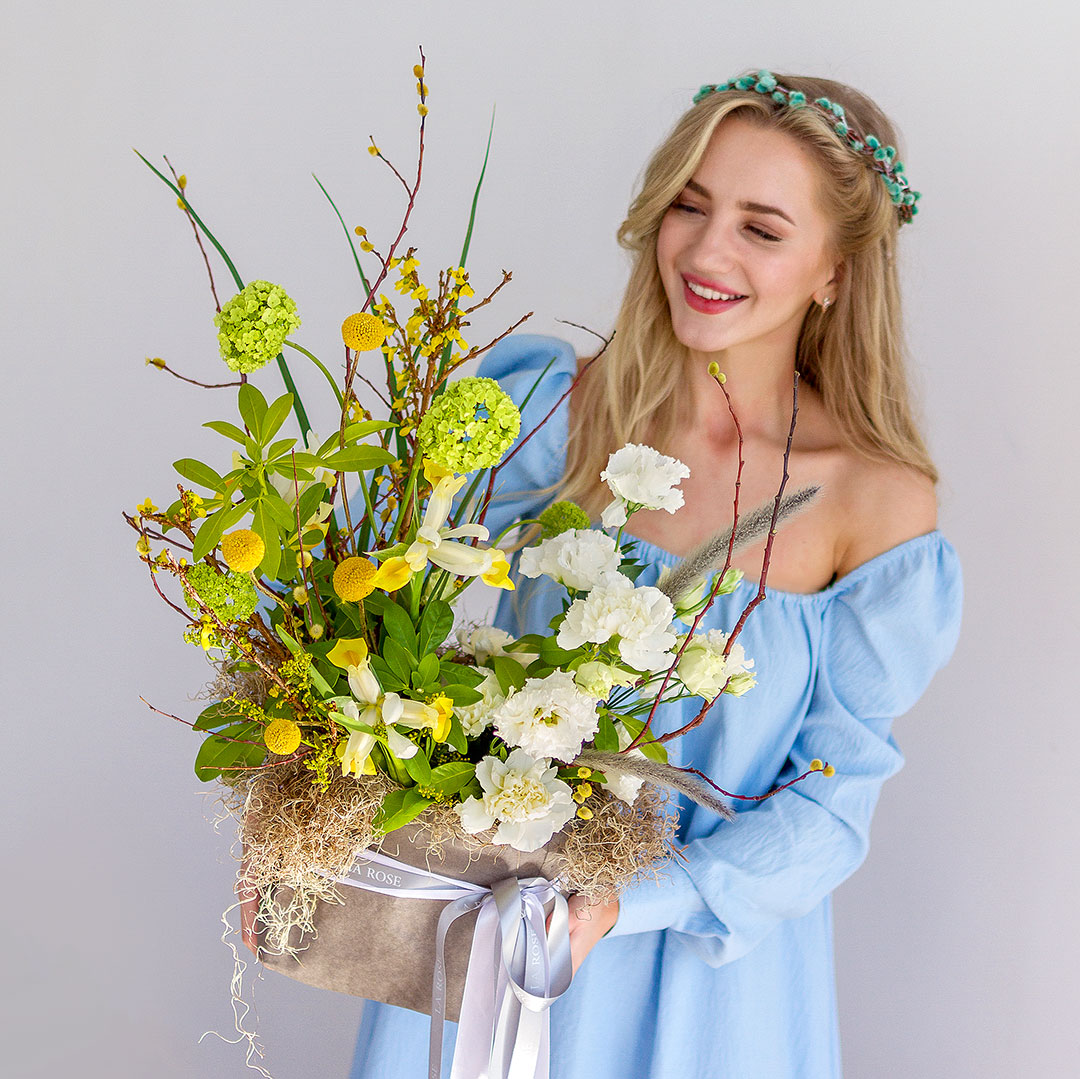 Некоторые цветы и материалы являются сезонными и могут быть недоступны в данный момент, поэтому мы оставляем за собой авторское право определять конечный состав букета.