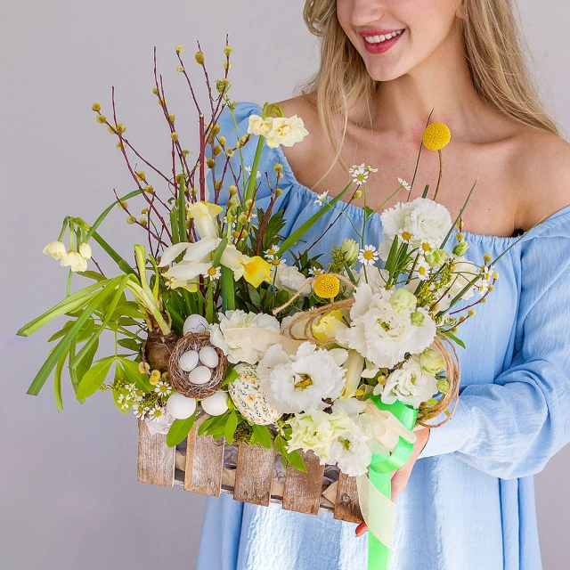 Доставим букет в стильной транспортировочной коробке и вазе