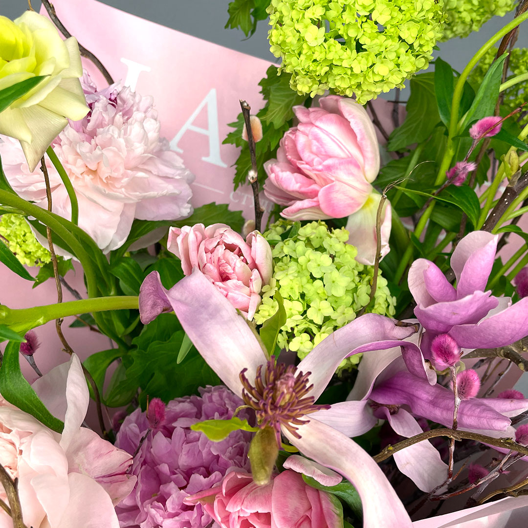 Доставим букет в стильной транспортировочной коробке и вазе