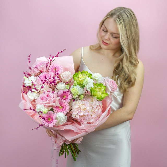 Свежие цветы от La Rose доставляются в фирменной коробке и вазе. Переставьте букет из аквабокса в вазу с водой, предварительно подрезав стебли под углом. Меняйте воду ежедневно, обновляя срез. На 2-3-й день можете добавить наш порошок. Используйте холодную воду и добавляйте лёд для лучшего эффекта. Держите цветы вдали от отопителей, солнца и фруктов — они вредят растениям.