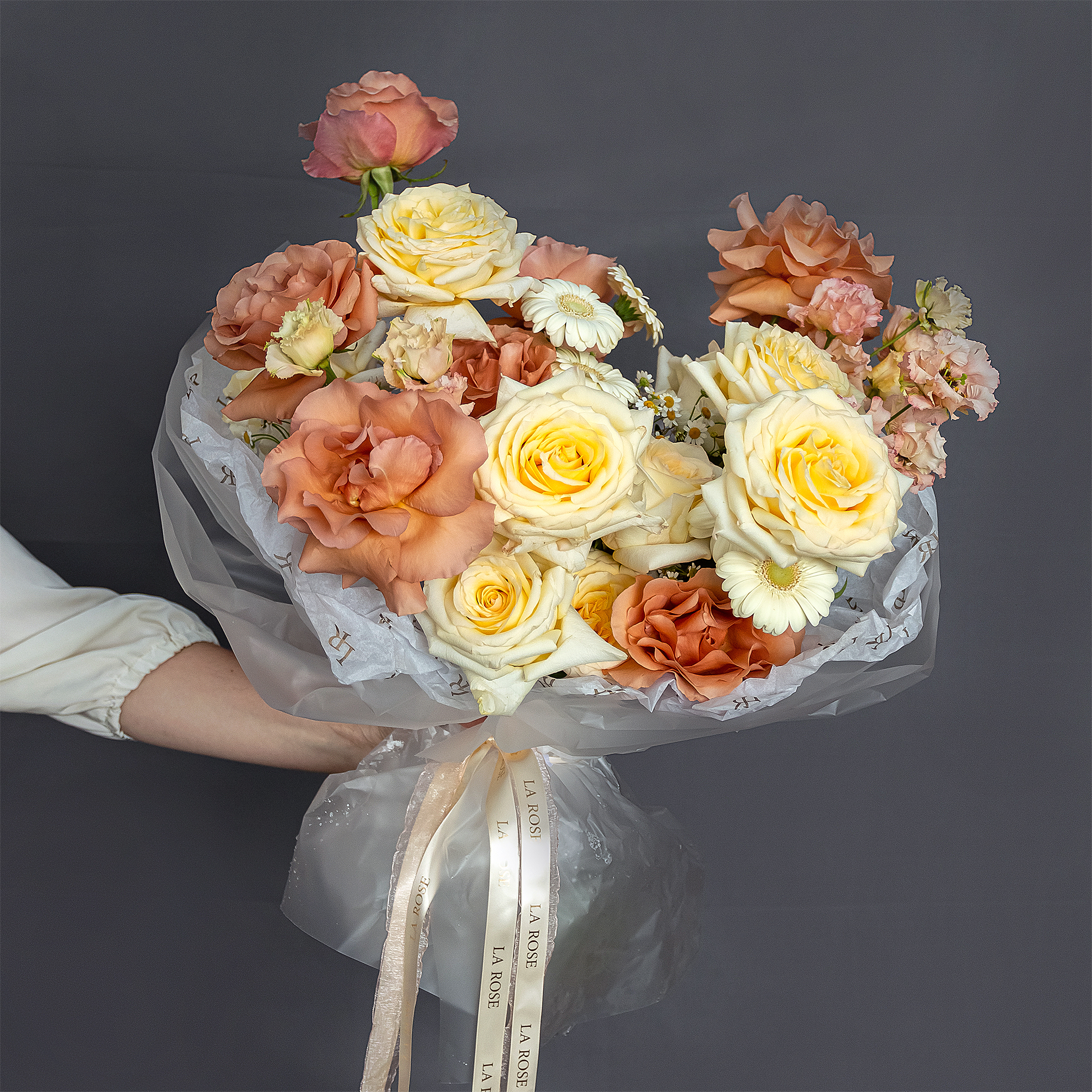 Некоторые цветы в этом букете отсутствуют из-за повышенного спроса или сезонности. Мы ГАРАНТИРОВАННО подберем равноценную альтернативу, сохраняя стиль и цветовую гамму букета. Стоимость и дизайн композиции согласовываются с вами до оплаты заказа. Ваше удовлетворение нашей работой — наш главный приоритет!