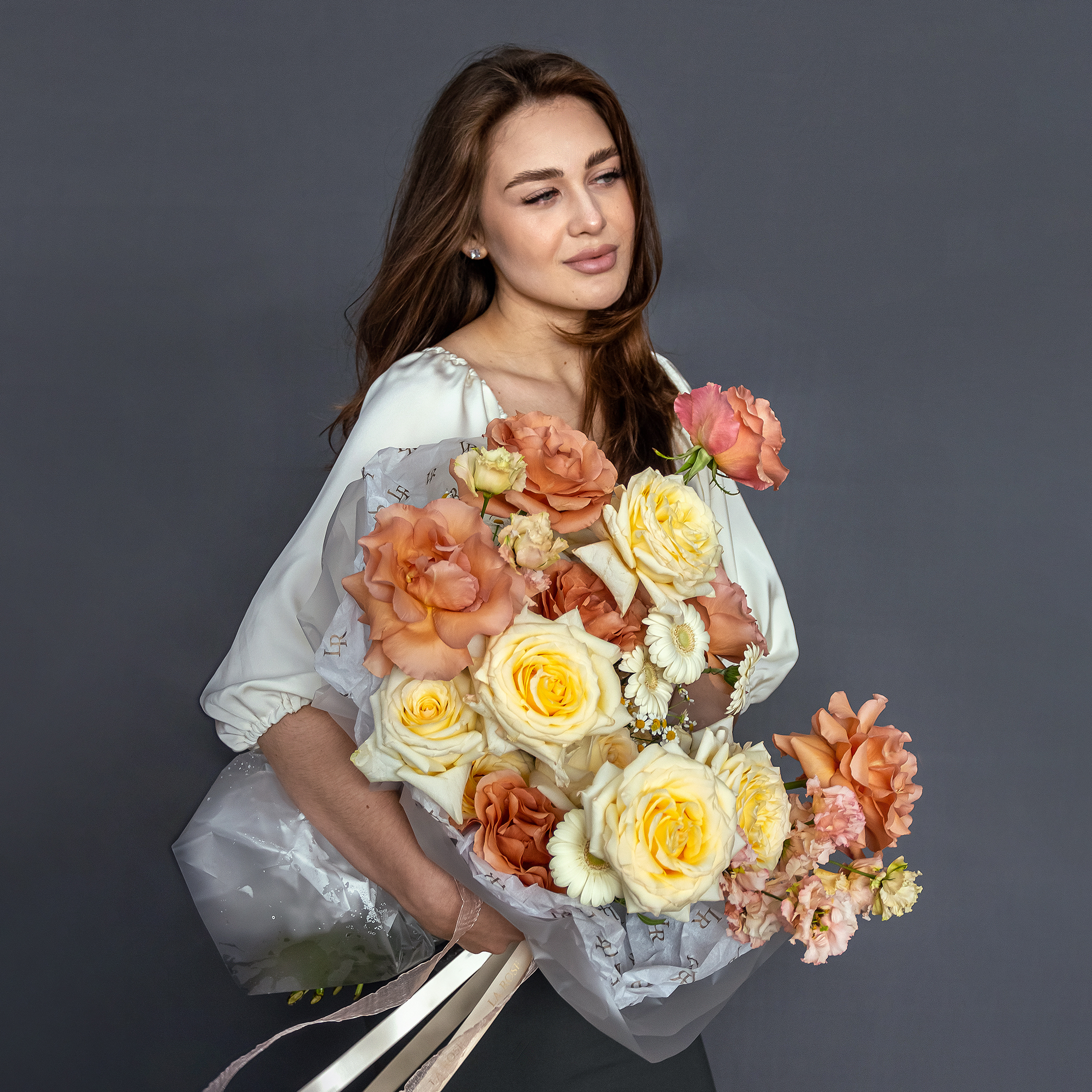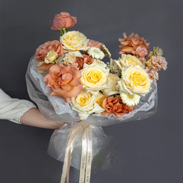 Свежие цветы от La Rose доставляются в фирменной коробке и вазе. Переставьте букет из аквабокса в вазу с водой, предварительно подрезав стебли под углом. Меняйте воду ежедневно, обновляя срез. На 2-3-й день можете добавить наш порошок. Используйте холодную воду и добавляйте лёд для лучшего эффекта. Держите цветы вдали от отопителей, солнца и фруктов — они вредят растениям.