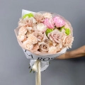 Некоторые цветы и материалы являются сезонными и могут быть недоступны в данный момент, поэтому мы оставляем за собой авторское право определять конечный состав букета.